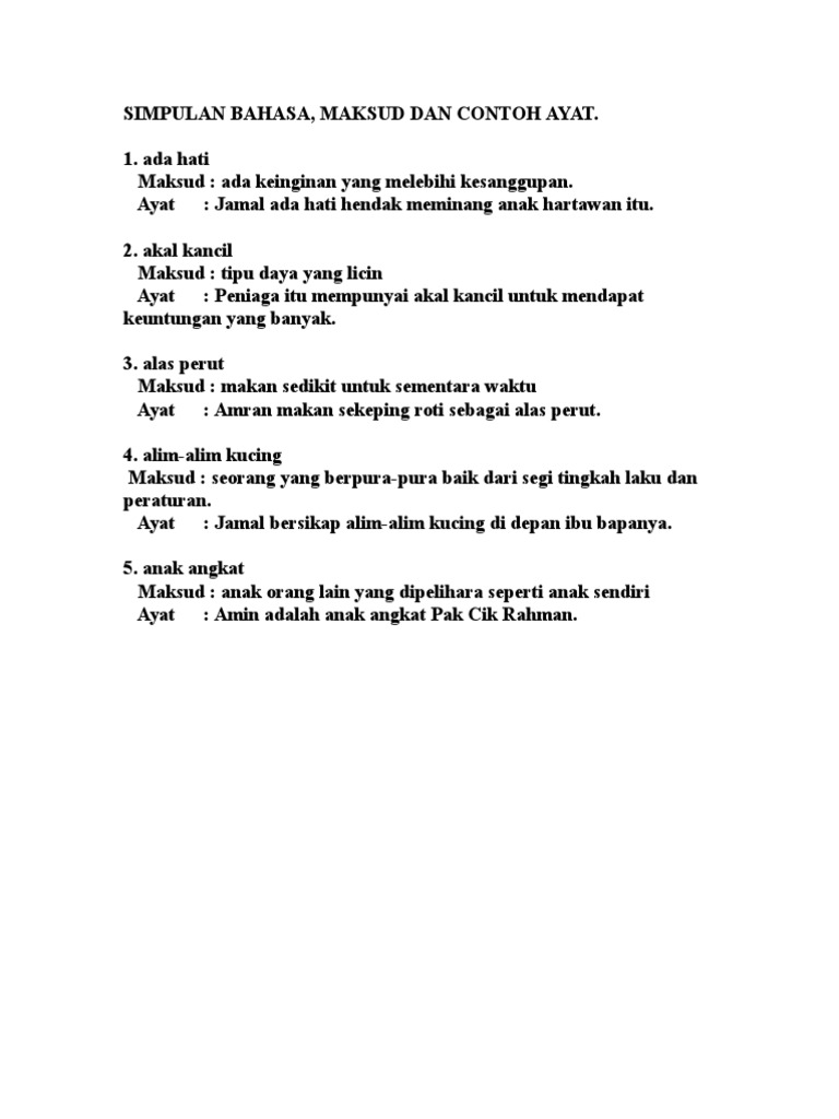 Contoh Ayat Simpulan Bahasa Tahun 2