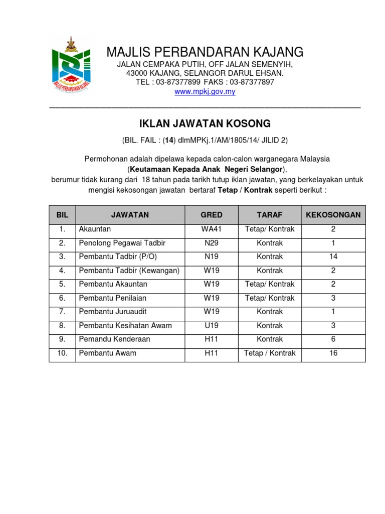 Jawatan Kosong Di Majlis Perbandaran Sepang Jobcari Com Jawatan Kosong Terkini