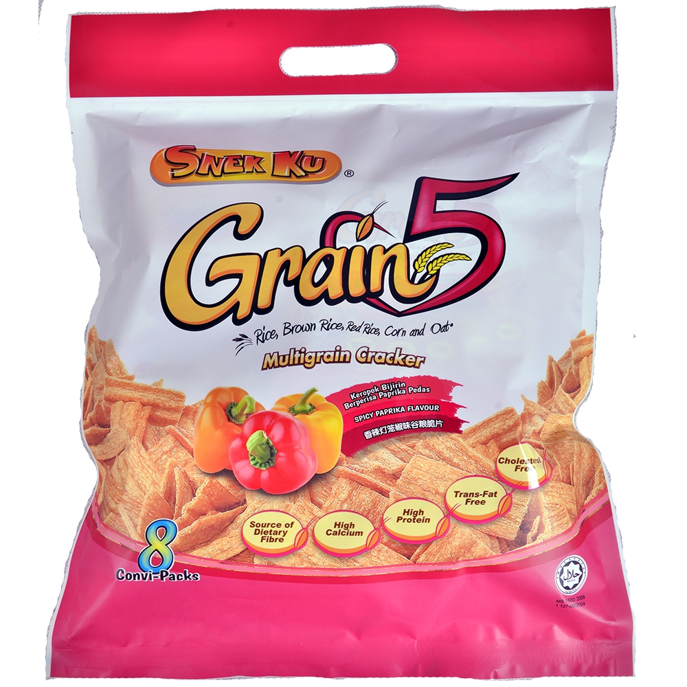 Snek Ku Grain 5 Multigrain Snack Crackers Spicy Paprika Flavour Convi Pack 14gx8 Shopee Malaysia