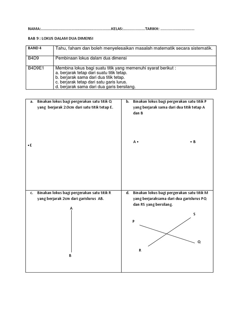 8 2 1 Lokus Dalam Dua Dimensi Praktis Berformat Pt3 Pt3 Matematik