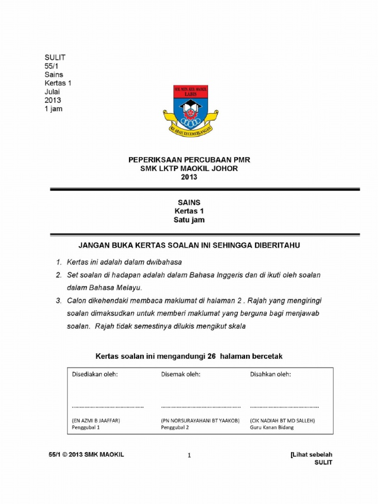 Bahasa melayu pmr 2013 november 1 september 4 august 2 july 1 june 1. Special thanks to p. Kemahiran hidup perdagangan dan keusahawanan trial pmr 2013 state of penang.