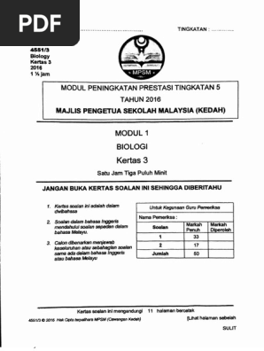 2016 Percubaan Spm Kedah Biologi Kertas 3 Pdf
