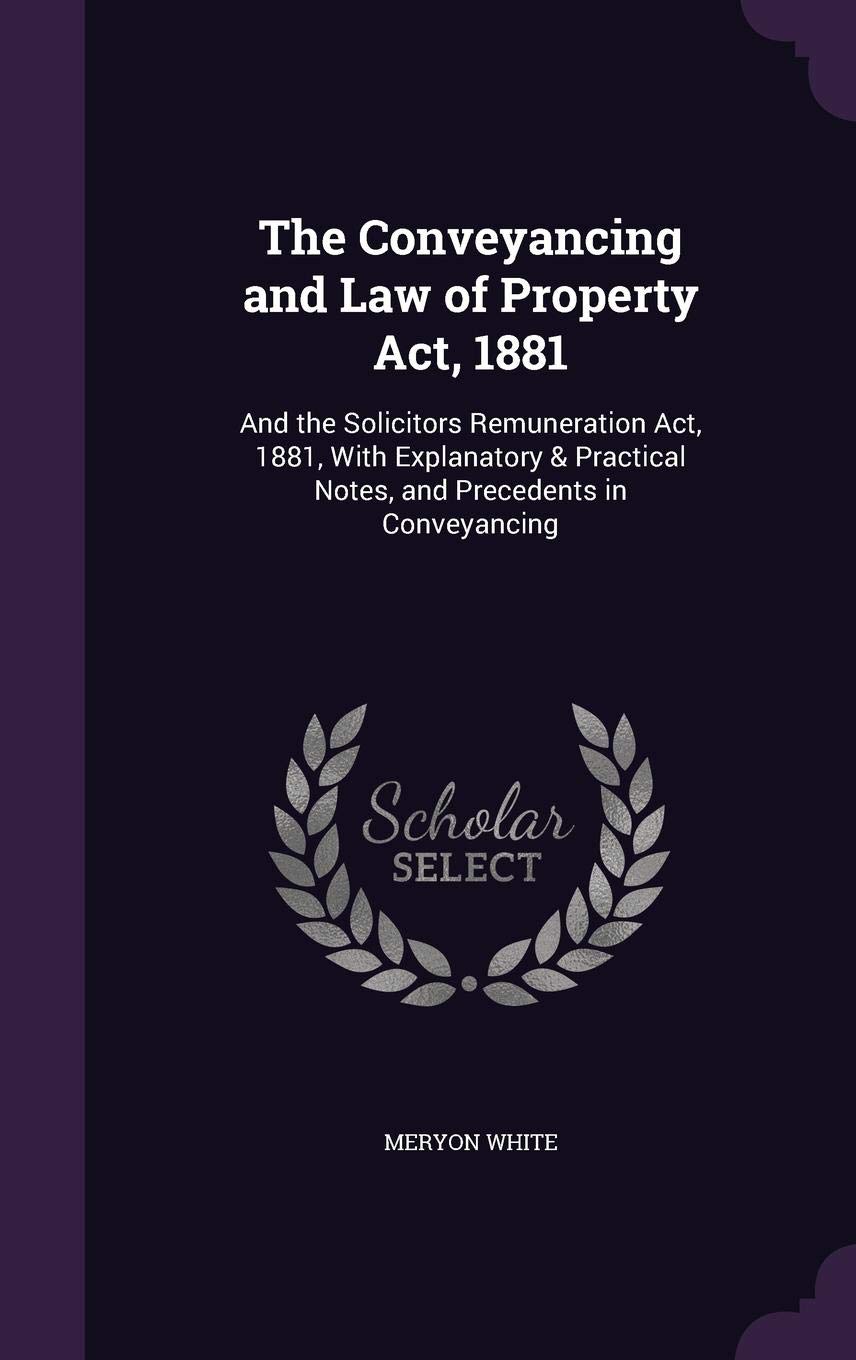 The Conveyancing And Law Of Property Act 1881 And The Solicitors Remuneration Act 1881 With Explanatory Practical Notes And Precedents In Conveyancing White Meryon 9781356913398 Books Amazon Ca