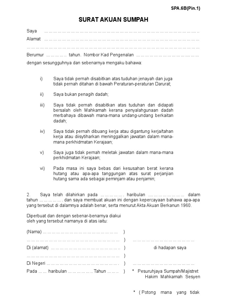 I Ii Iii Spa 6b Pin 1 Surat Akuan Sumpah