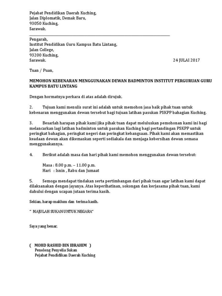 Surat memohon kebenaran menggunakan dewan. Surat mohon kebenaran menggunakan dewan sekolah nazri 3 43 ptg karangan surat kiriman rasmi 0 comments kelab alam sekitar sekolah kebangsaan bukit bauk 23000 dungun terengganu darul iman. Contoh surat rayuan an pertukaran mengikut suami. All the images that appear are the pictures we collect from various media on the internet.