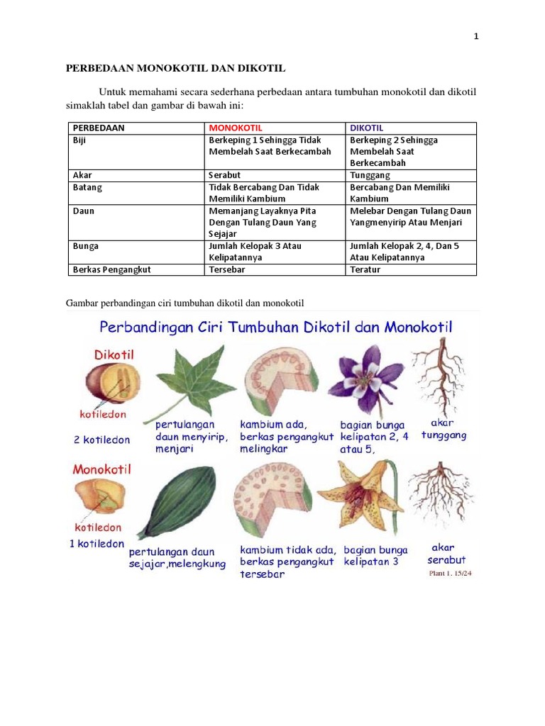 Untuk Memahami Secara Sederhana Perbedaan Antara Tumbuhan Monokotil Dan Dikotil Simaklah Tabel Dan Gambar Di Bawah Ini