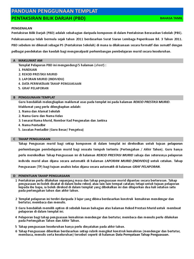 Panduan Penggunaan Templat Pelaporan Pentaksiran Bilik Darjah Pbd