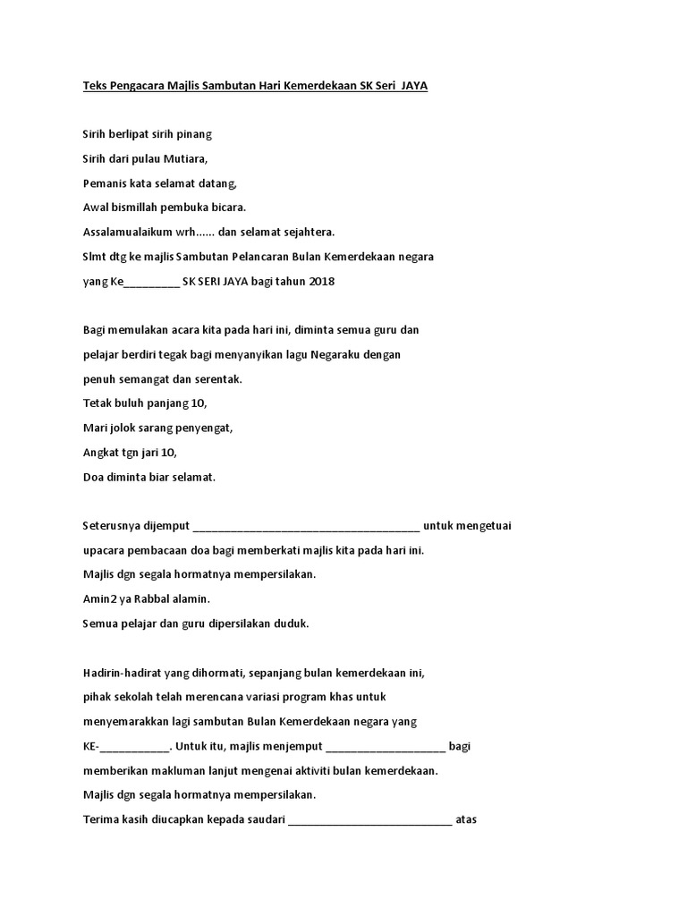 Teks Pengacara Majlis Sambutan Hari Kemerdekaan Docx