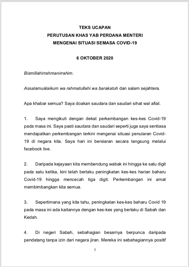 Majlis Keselamatan Negara Jabatan Perdana Menteri A Twitter Teks Ucapan Perutusan Khas Perdana Menteri Mengenai Situasi Semasa Covid 19