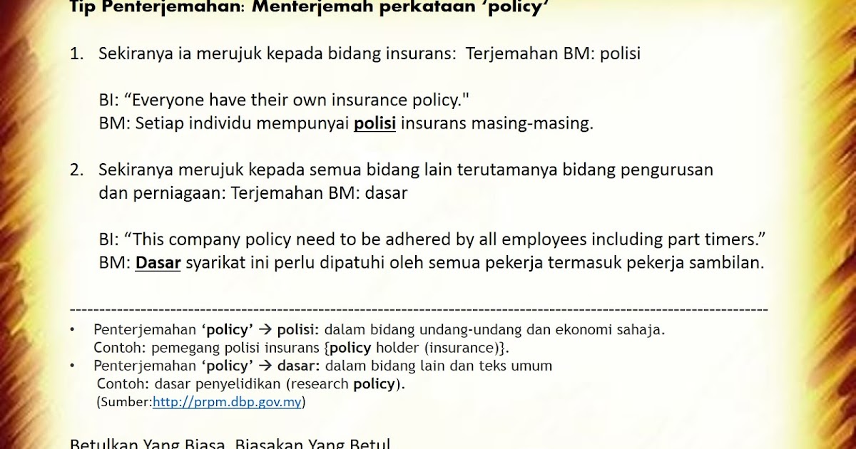 Semua Tentang Penterjemahan Tip Penterjemahan Menterjemah Perkataan Policy
