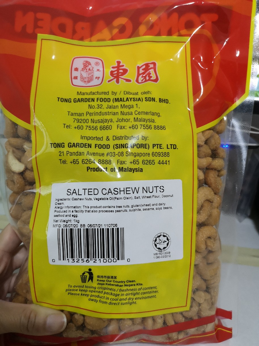 Tong Garden Cashews 1 Kg Plain Salted Shopee Singapore