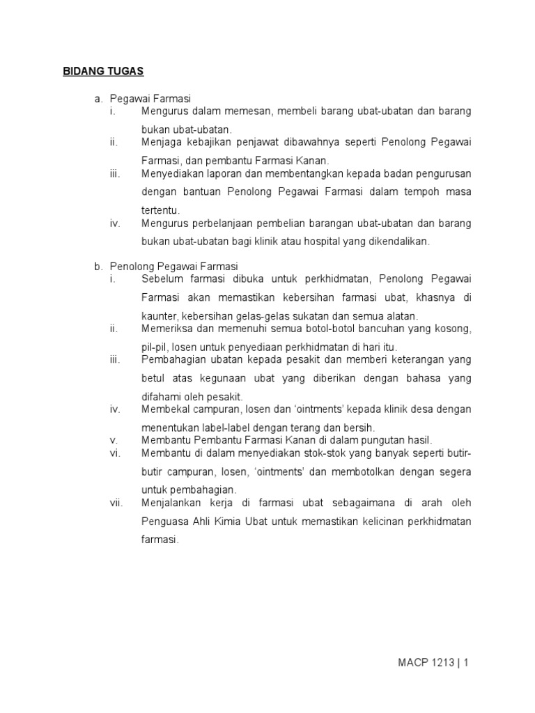 Deskripsi Tugas Penolong Pegawai Farmasi Gred U29 Skop Kerja Gaji